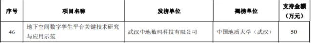 近日,东湖高新区公布了第三批“揭榜挂帅”项目,中地数码与中国地质大学(武汉)合作科研项目《地下空间数字孪生平台关键技术研究与应用示范》荣登榜单。